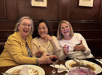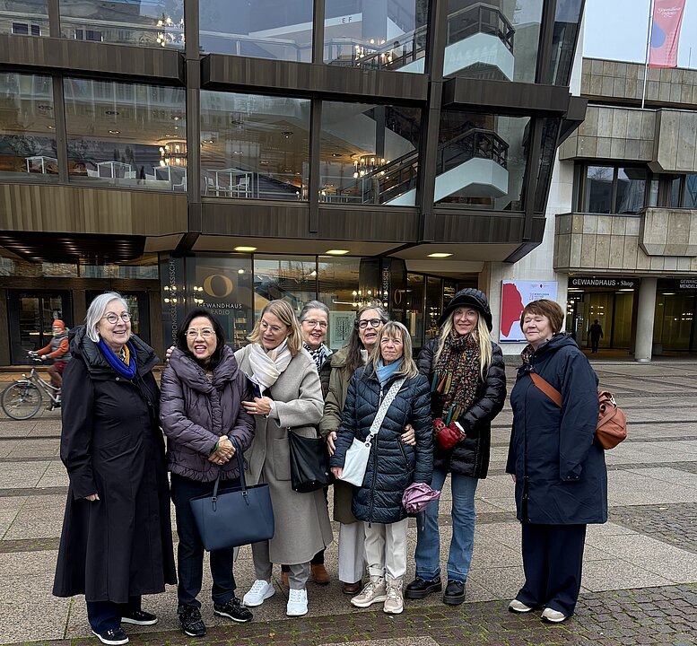 Nachmittags trafen gut gelaunt unsere Weltpräsidentin Siew Yong, Catherine Schuppli (Past-Präsidentin Schweiz) und ihr Mann Markus, Anne Dörrhofer auf ebenso gut gelaunte Leipziger Clubschwestern (trotz Schietwetter).